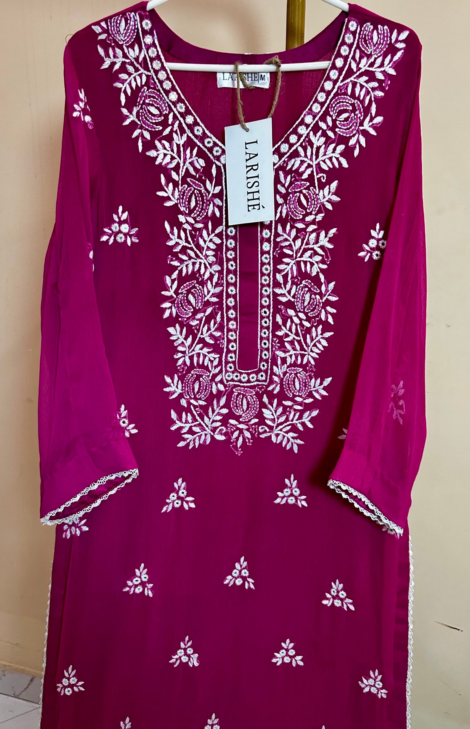 Hand embroidered fuchsia