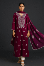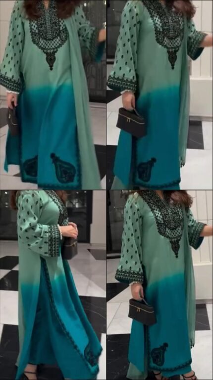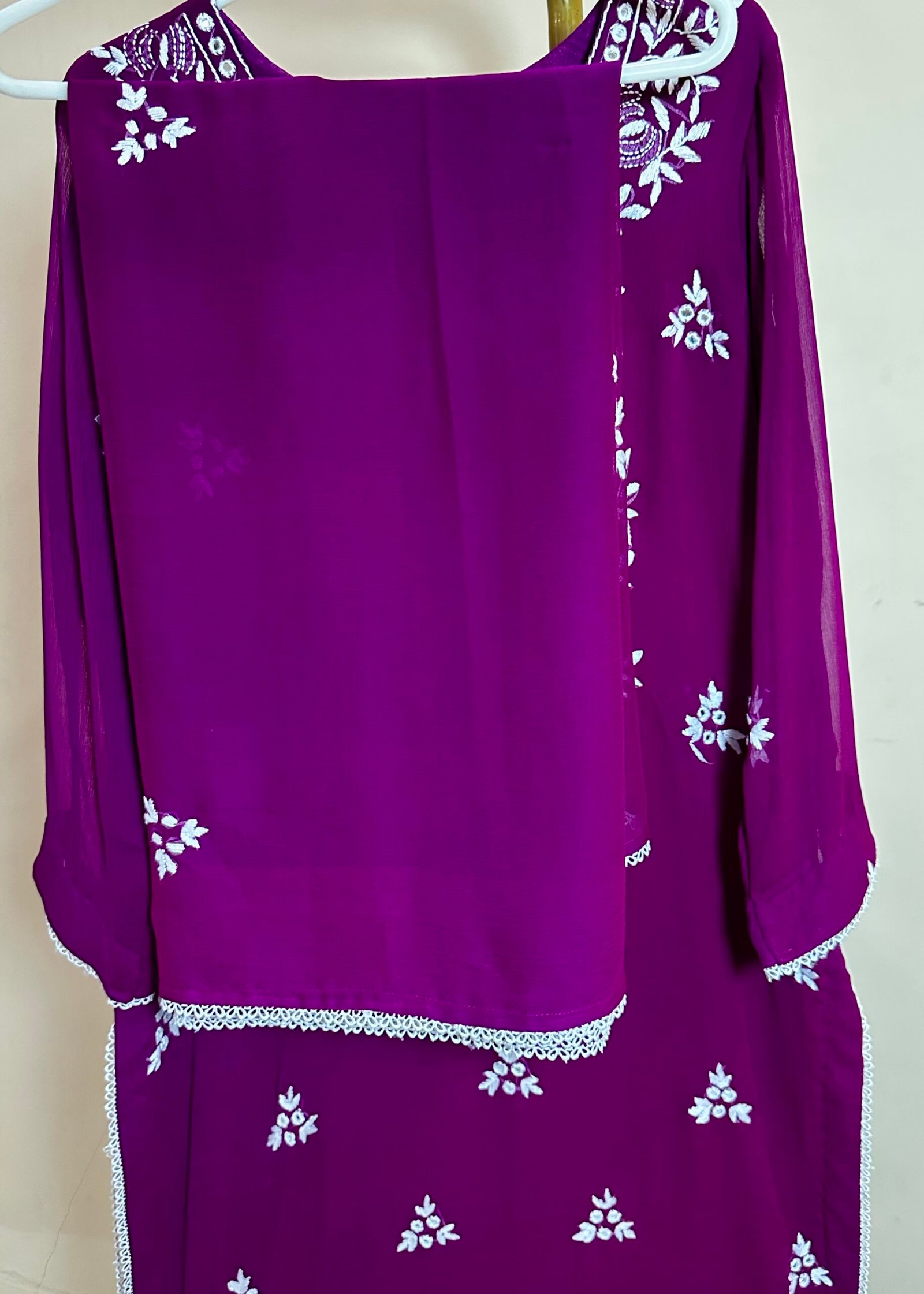 Two-piece chiffon suit, beautifully adorned with delicate hand embroidery on the shirt and dupatta crafted to bring elegance and grace to every occasion.