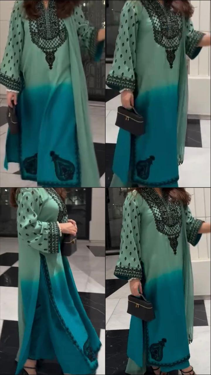 This rich turquoise, with its hint of ocean and sky, is one of them. Silk Sapphire is a 3-piece suit in premium silk, complete with a soft, flowing dupatta that moves as effortlessly as you do. The cool, jewel-toned shade catches the light in just the right way, making it perfect for a friend’s brunch, a family gathering, or a quiet evening outing.